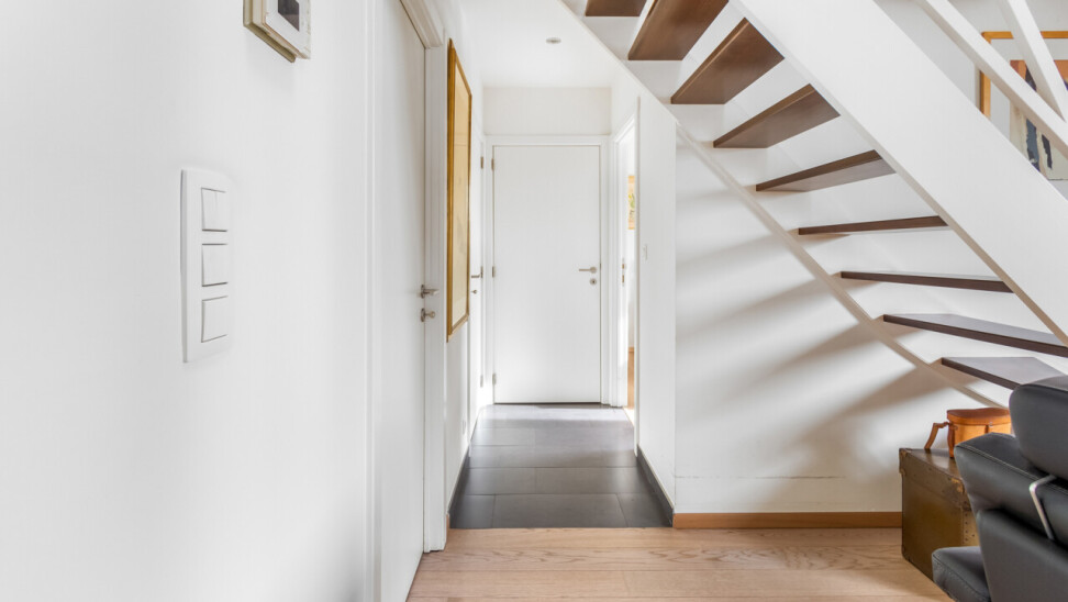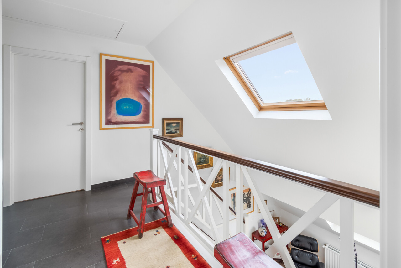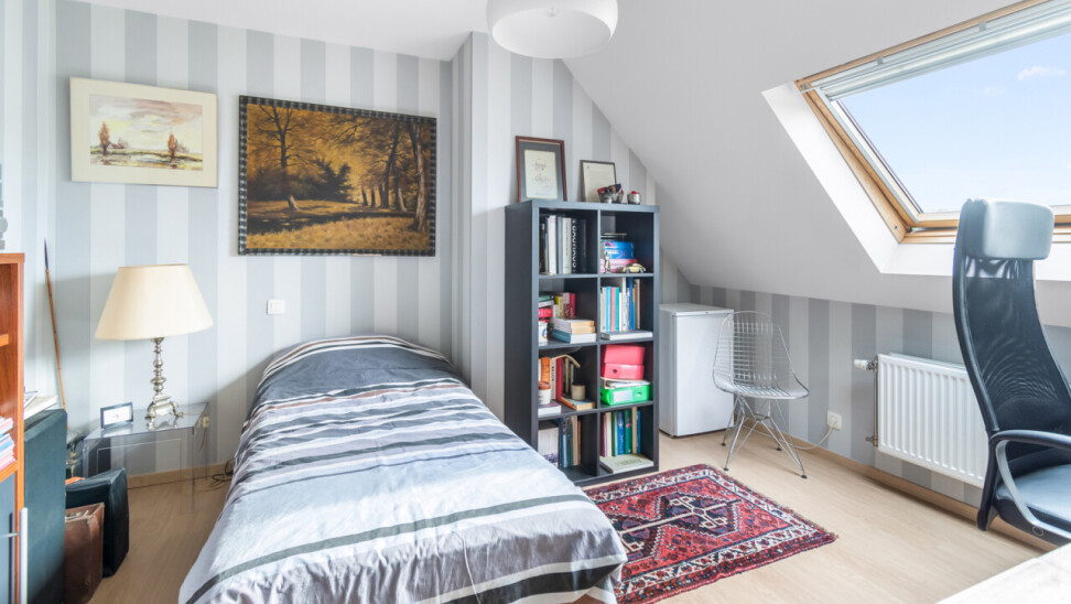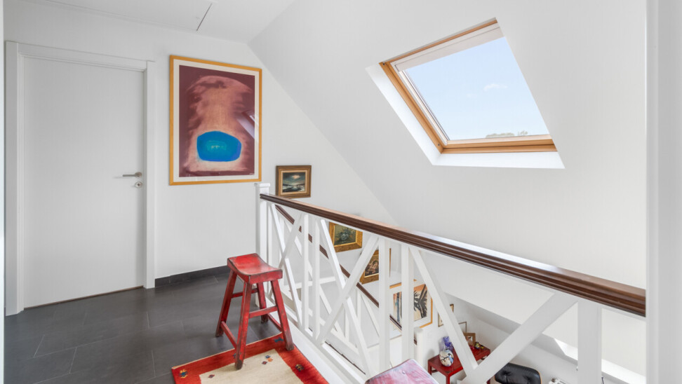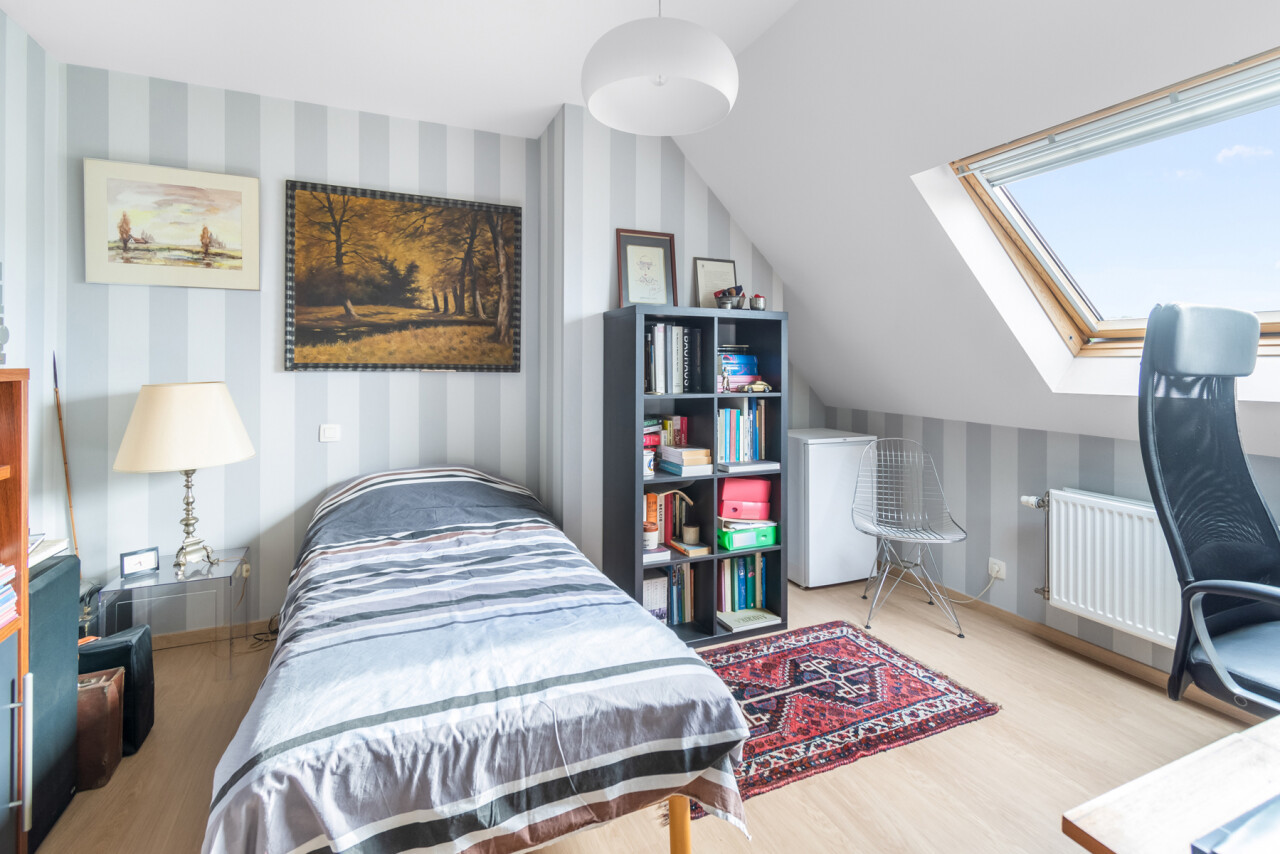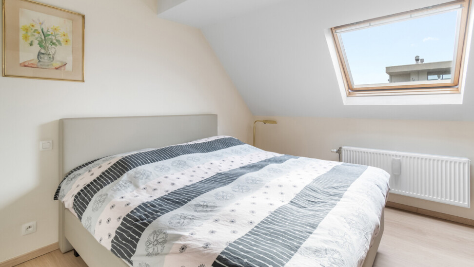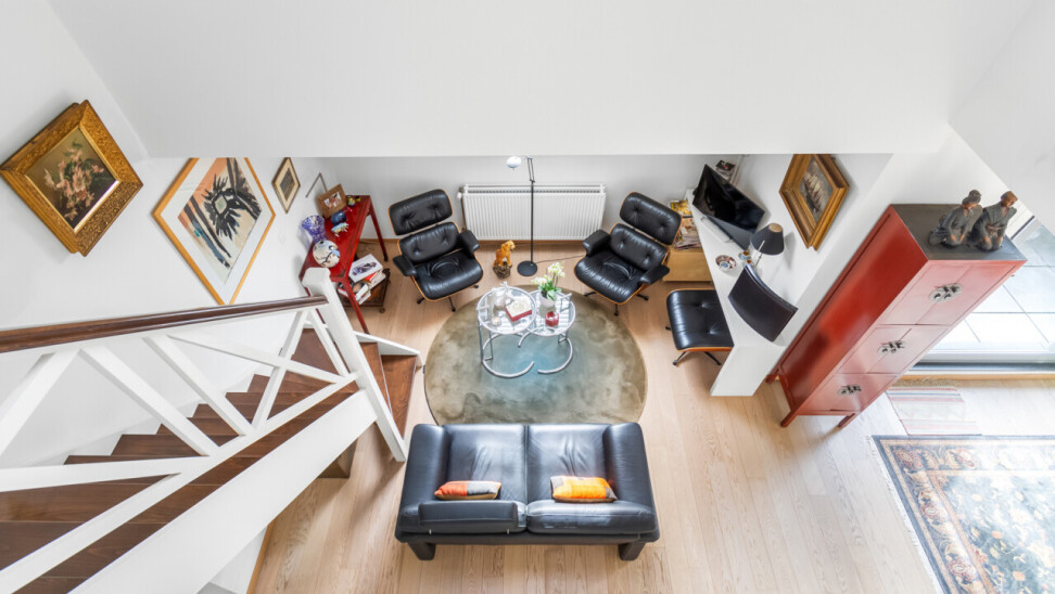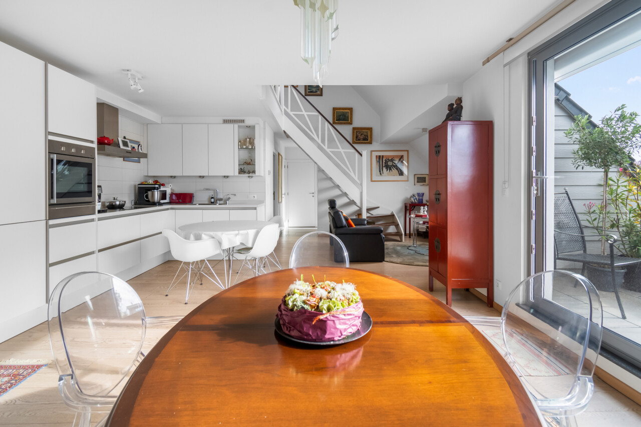 Un escalier mène à l’étage supérieur du duplex, où se trouvent deux grandes chambres supplémentaires et un deuxième WC séparé.