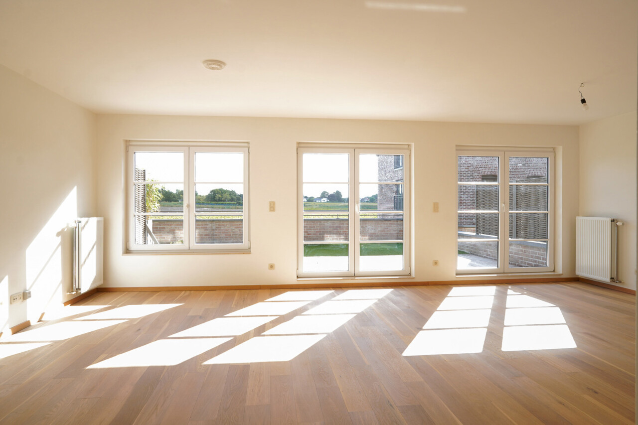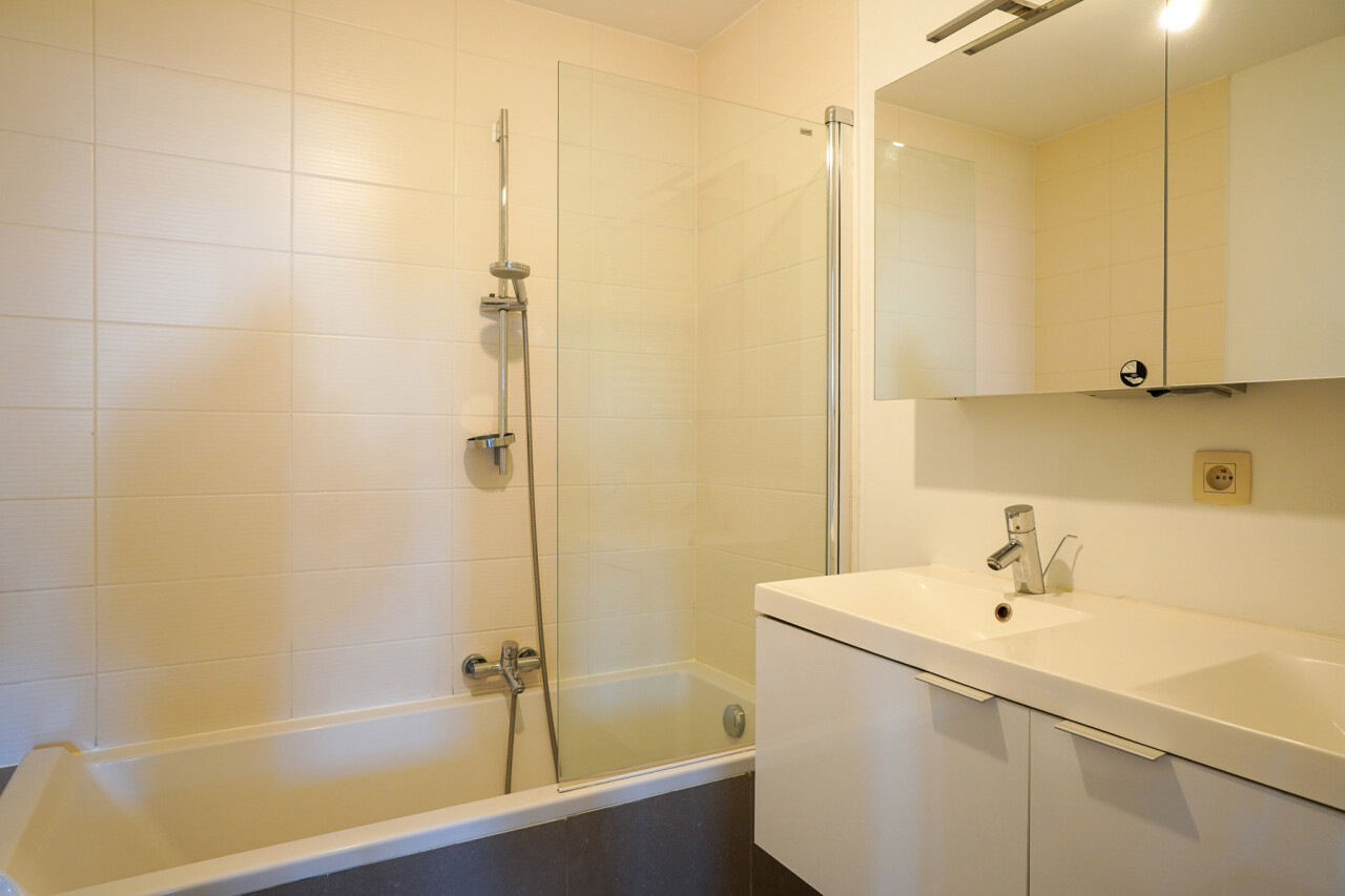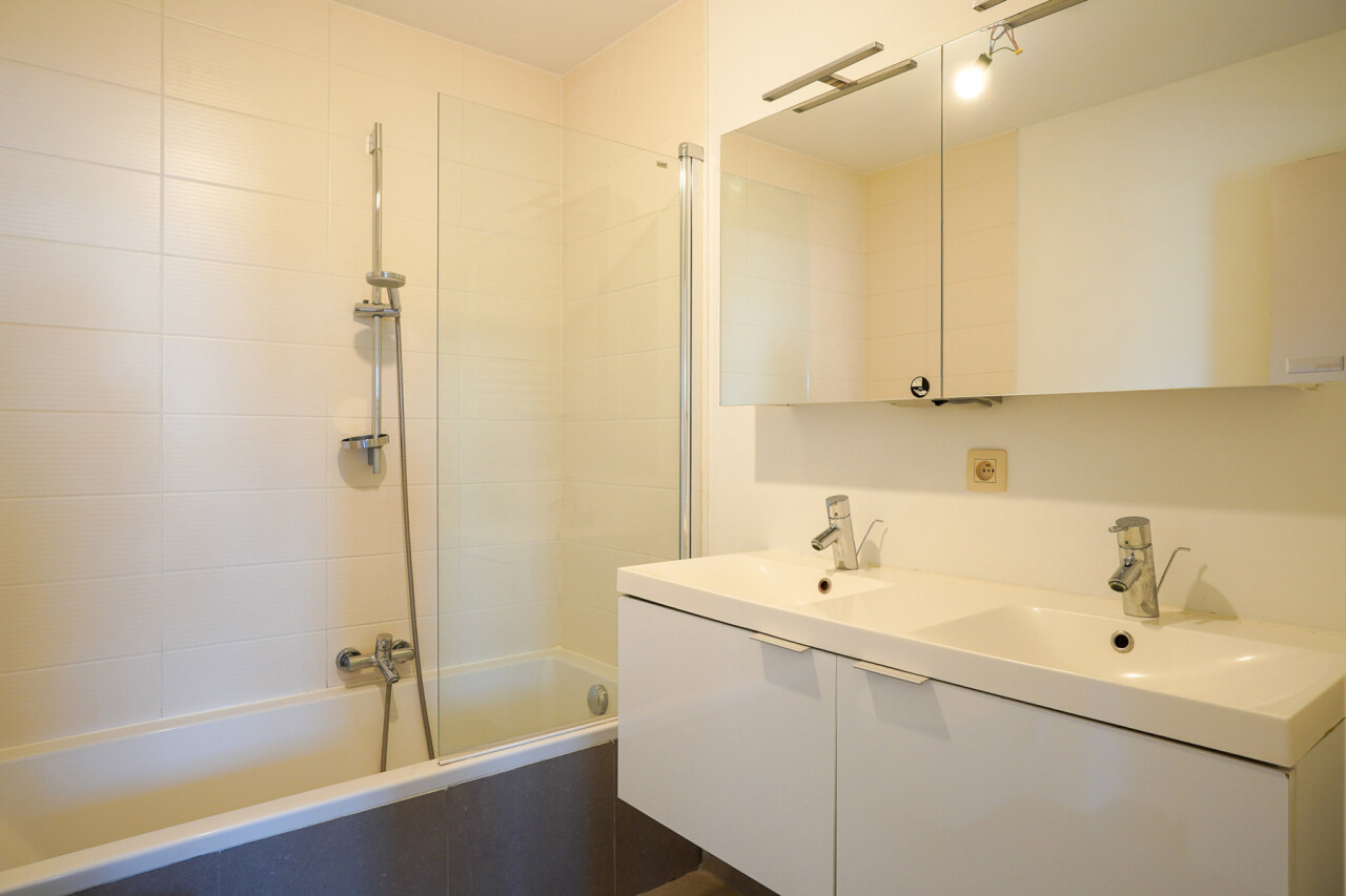Bij binnenkomst kom je in de ruime inkomhal met afzonderlijk toilet. Verder door wandel je naar de lichtrijke leefruimte, die aansluit op de ruime keuken. Vanuit de nachthal heb je toegang tot de twee slaapkamers en de badkamer, uitgerust met ligbad.