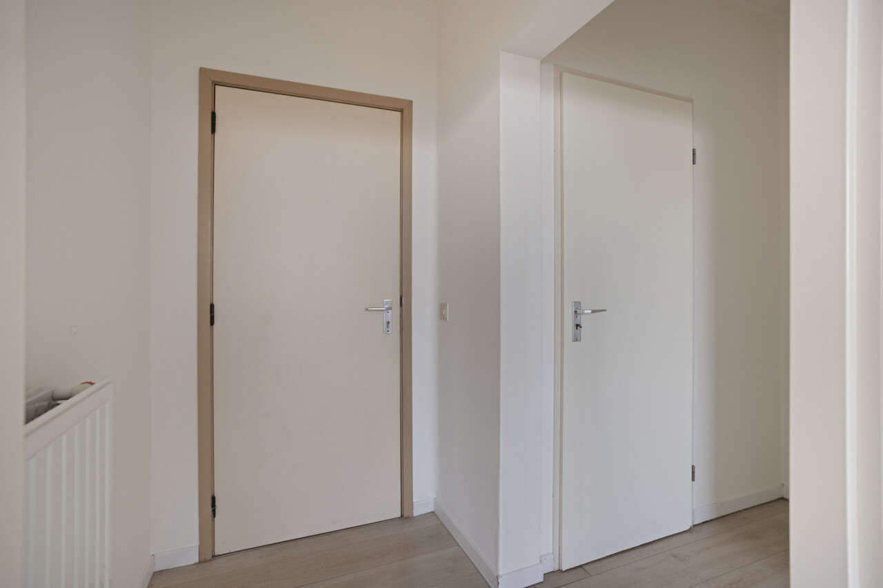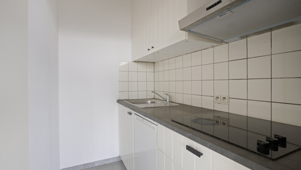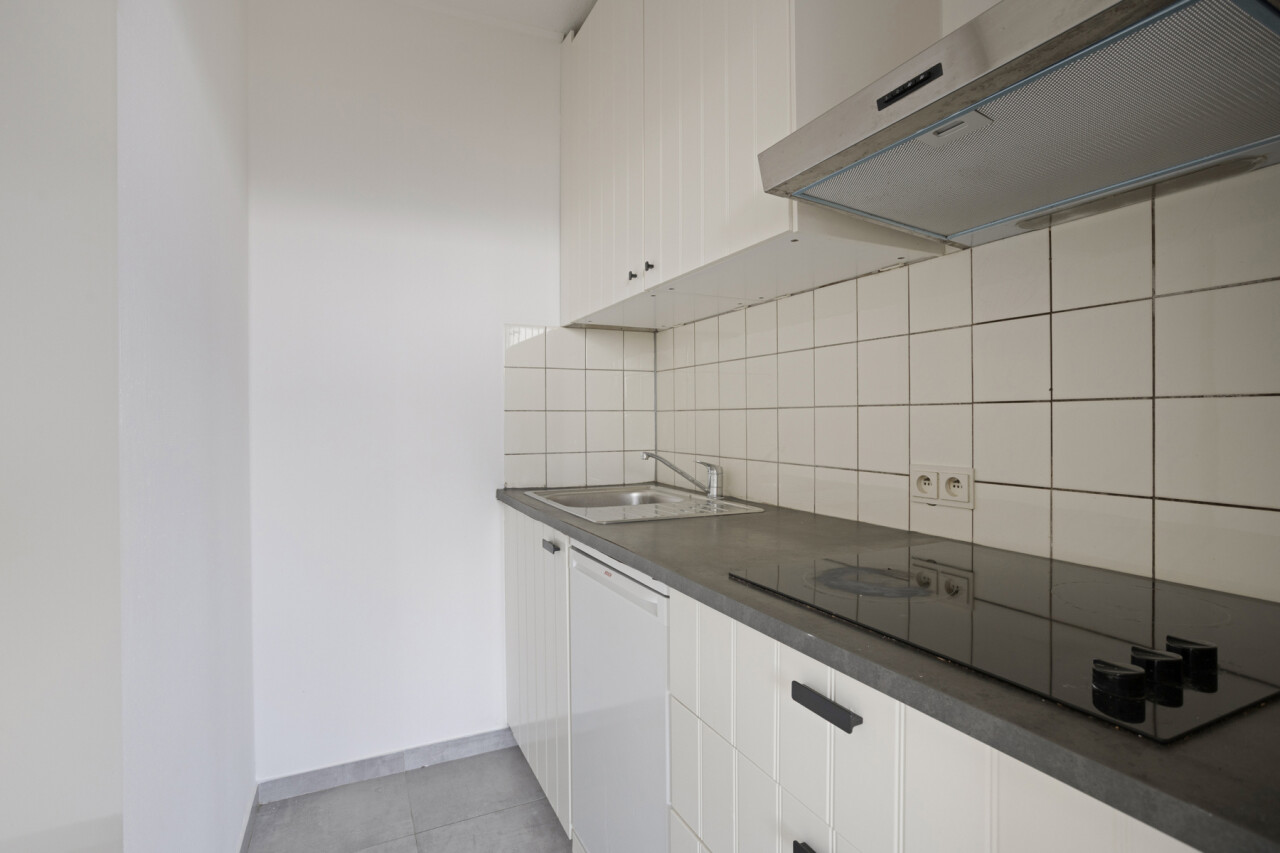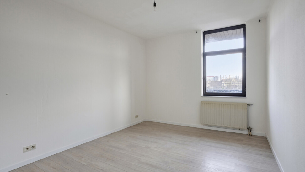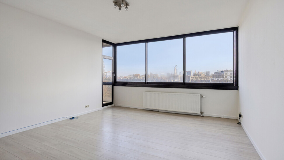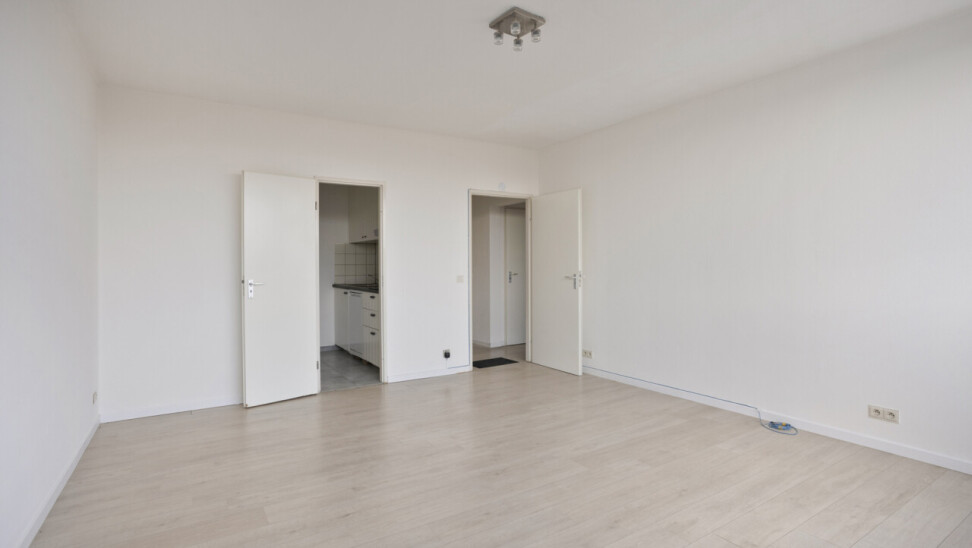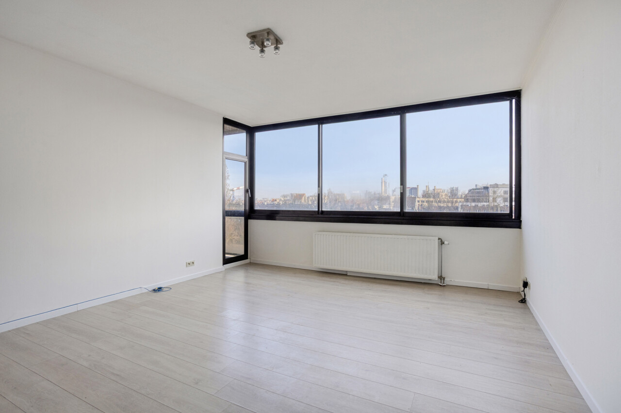 Het appartement bestaat uit een lichtrijke leefruimte met grote raampartijen die zorgen voor veel natuurlijke lichtinval en een vrij uitzicht. De keuken sluit aan op de leefruimte en biedt alle basiscomfort. Verder beschikt het appartement over een ruime slaapkamer, een badkamer met ligbad en lavabo, en een apart toilet.