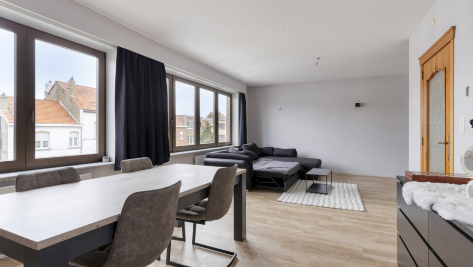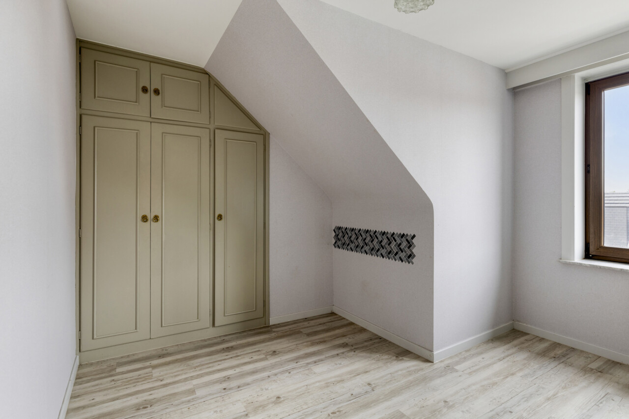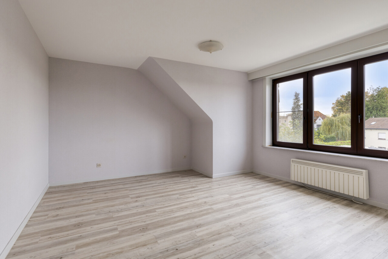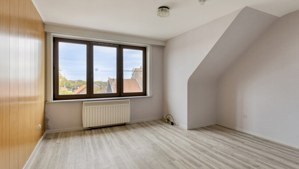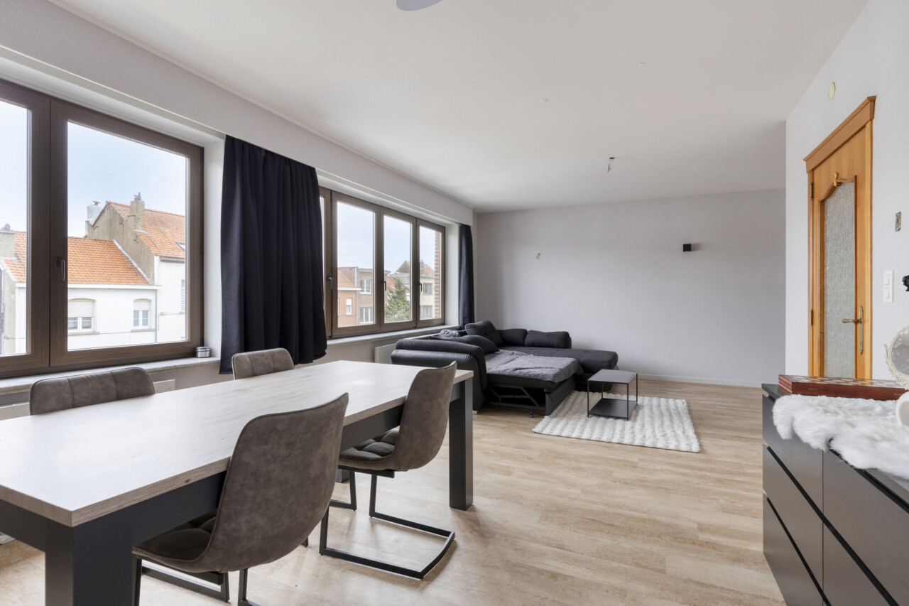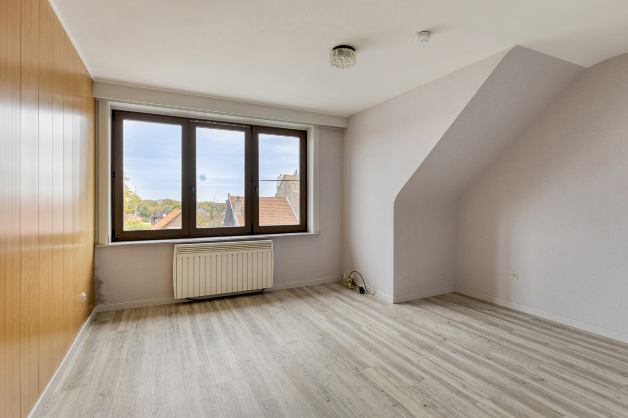Het tweede verdiep heeft een gelijkaardige indeling en biedt een woonoppervlakte van 109 m². Hier werden zowel de keuken als de badkamer reeds vernieuwd. Dit appartement is momenteel verhuurd.