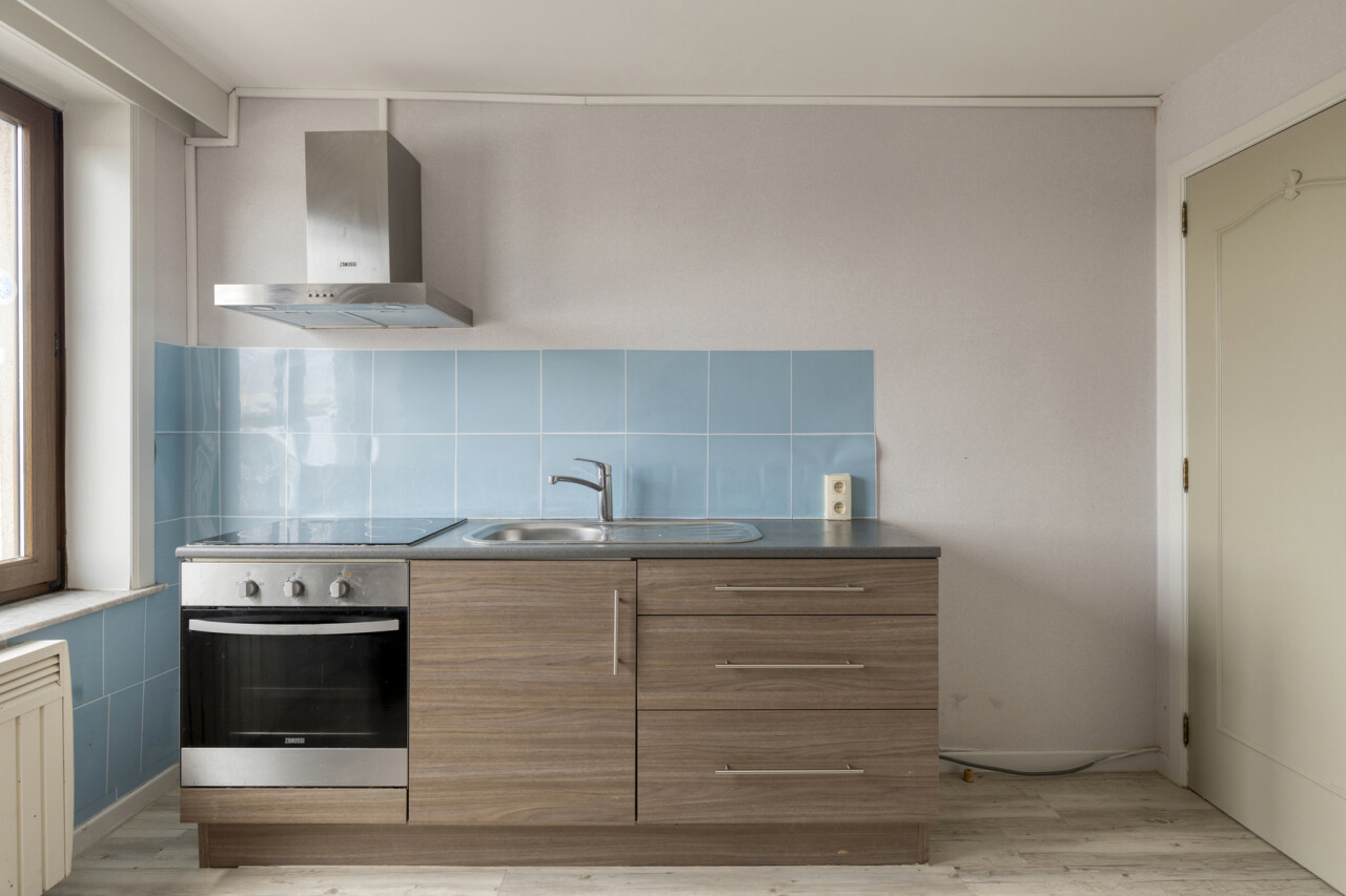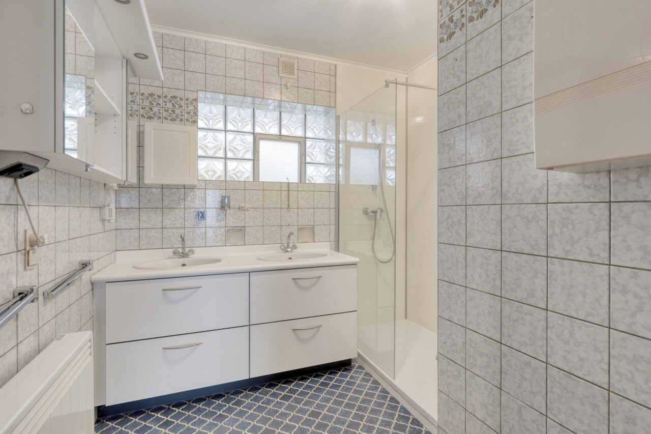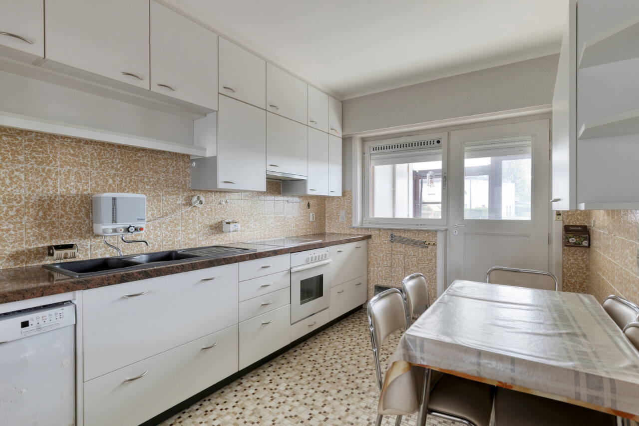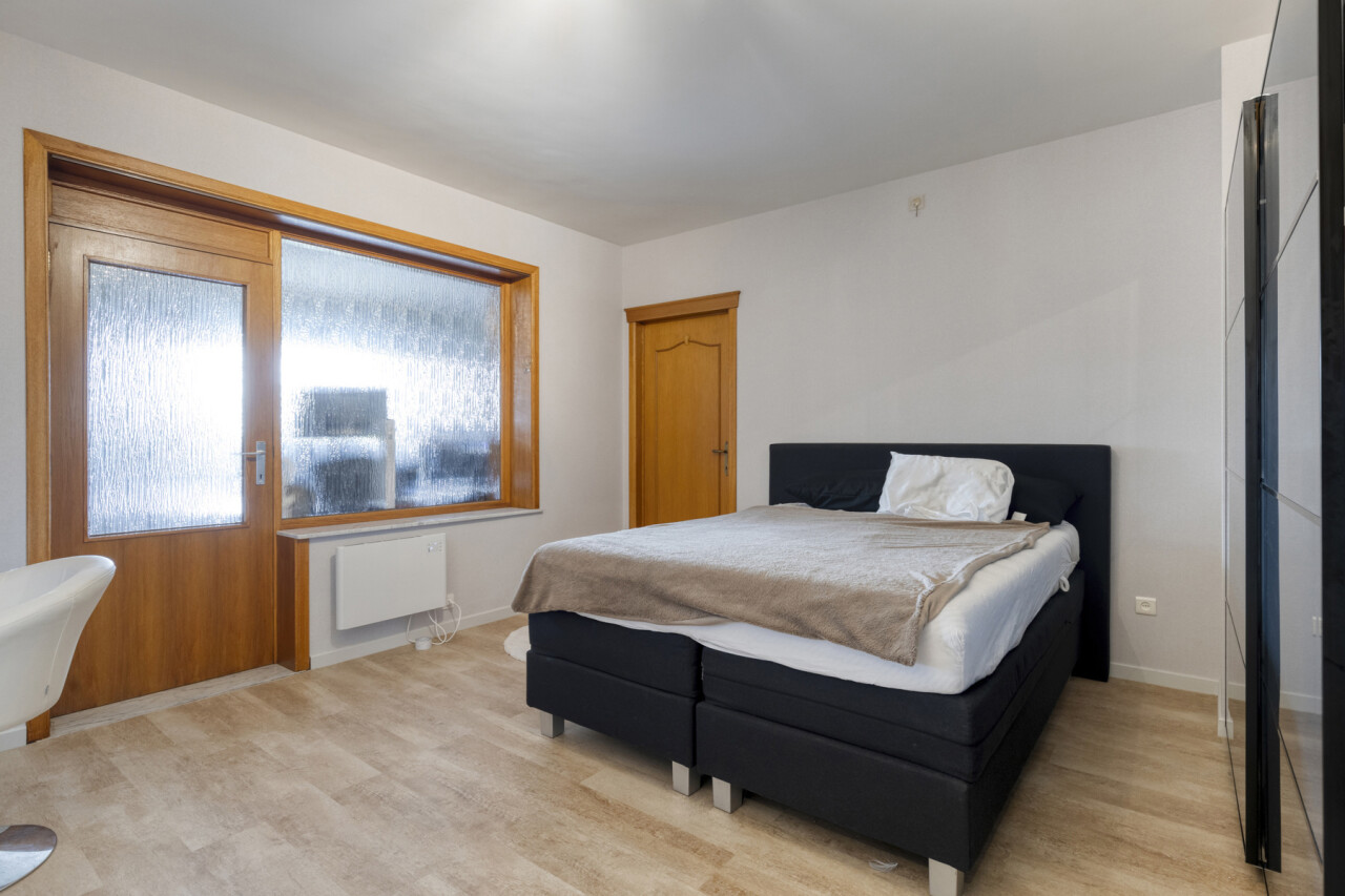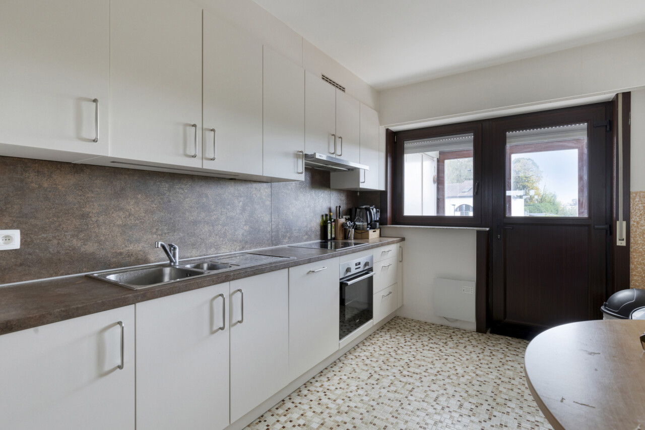 Het tweede verdiep heeft een gelijkaardige indeling en biedt een woonoppervlakte van 109 m². Hier werden zowel de keuken als de badkamer reeds vernieuwd. Dit appartement is momenteel verhuurd.
