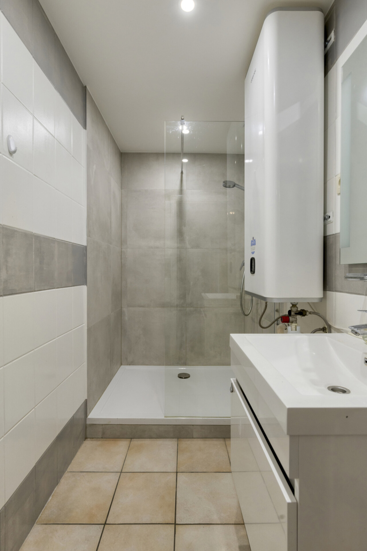 Op de derde verdieping bevindt zich een appartement van 96 m². Via de centrale gang komen we links de keuken en de woonkamer tegen, terwijl de badkamer zich aan het einde van de gang bevindt. Aan de rechterzijde bevinden zich opnieuw twee slaapkamers. Bovendien beschikt dit appartement over een zolderruimte.
